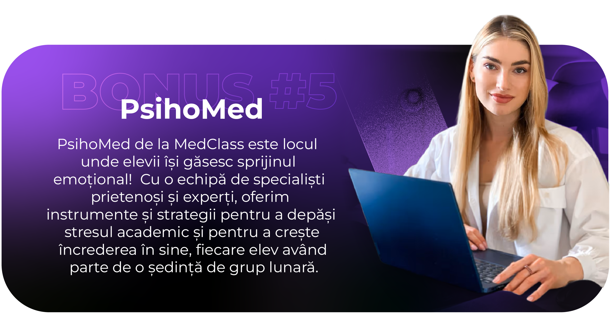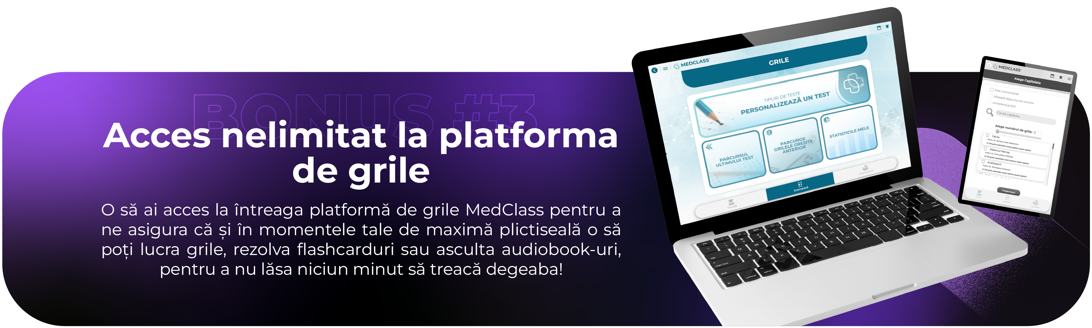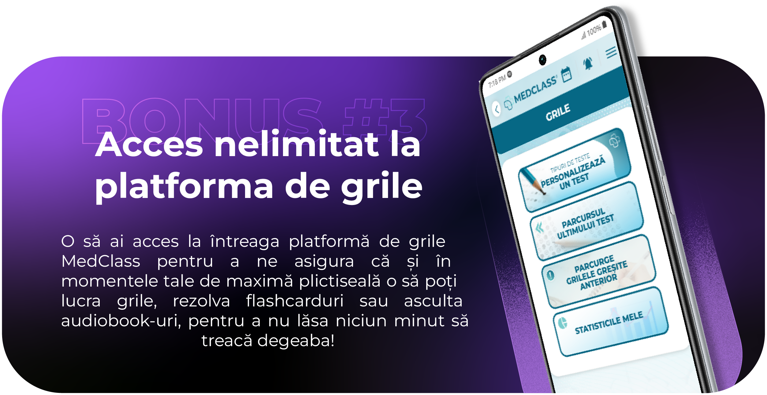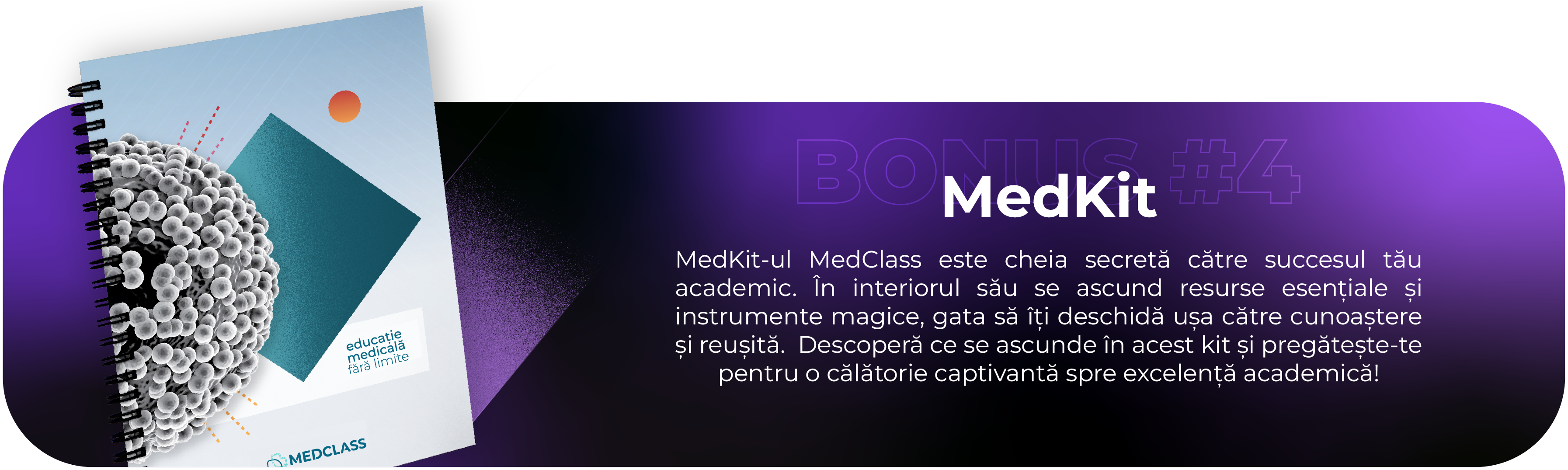 Elevii vor beneficia de acces nelimitat la întreaga gamă de resurse MedClass, inclusiv la toate flashcardurile de biologie, chimie și fizică, precum și la peste 45.000 de grile de învățare. Prin intermediul platformei noastre, vor putea utiliza inteligența artificială Dante, să se conecteze la comunitatea MedClass și să își ia note direct în aplicație. Oportunități educaționale și instrumente utile, toate la îndemâna lor.