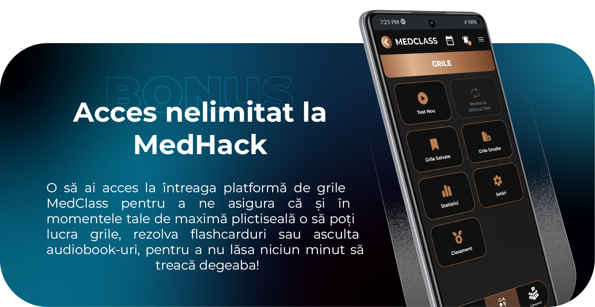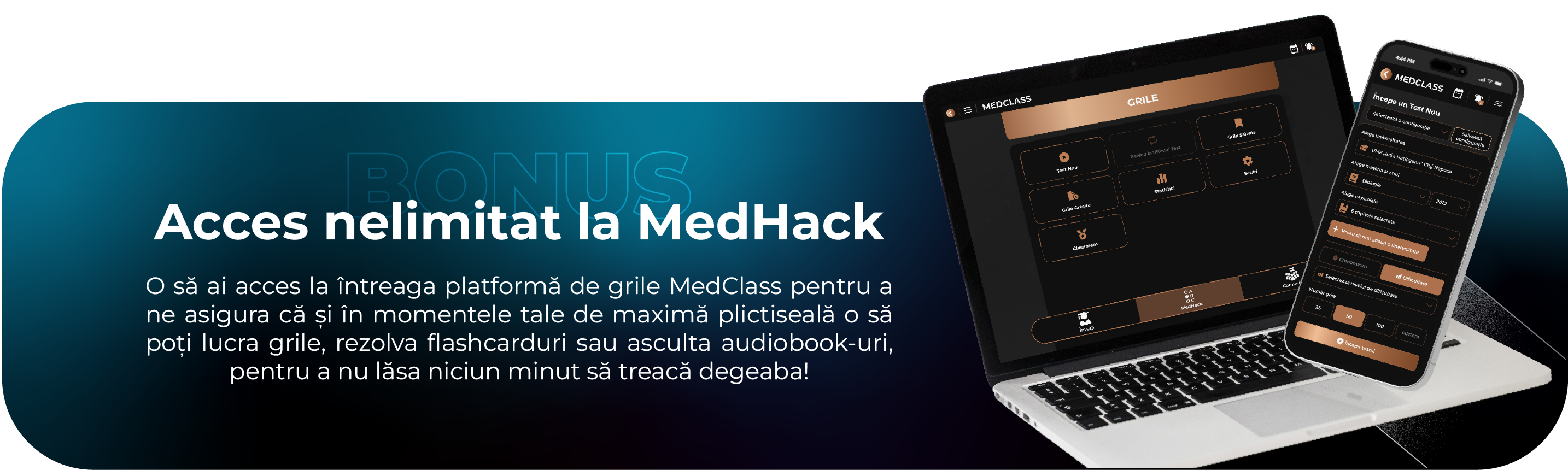 Elevii vor beneficia de acces nelimitat la întreaga gamă de resurse MedClass, inclusiv la toate flashcardurile de biologie, chimie și fizică, precum și la peste 45.000 de grile de învățare. Prin intermediul platformei noastre, vor putea utiliza inteligența artificială Dante, să se conecteze la comunitatea MedClass și să își ia note direct în aplicație. Oportunități educaționale și instrumente utile, toate la îndemâna lor.