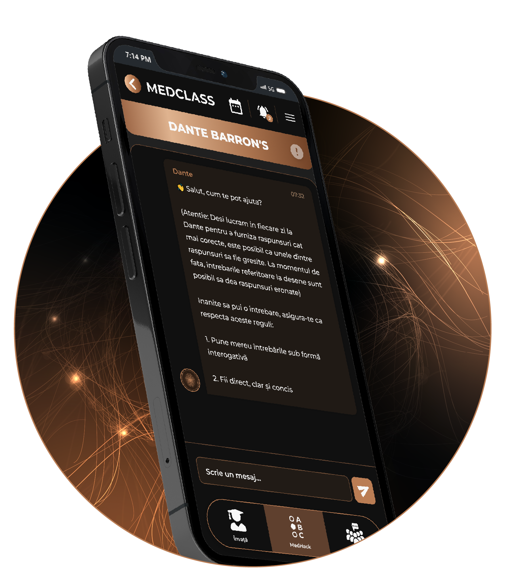 În secțiunea Dante, te vei întâlni cu un asistent virtual inteligent care îți va oferi suport și îndrumare personalizată pe baza bibliografiei de admitere. Dante este alimentat de inteligența artificială și este proiectat să răspundă întrebărilor tale, să ofere explicații și să ofere sugestii pentru a-ți optimiza experiența de învățare conform cerințelor admiterii.