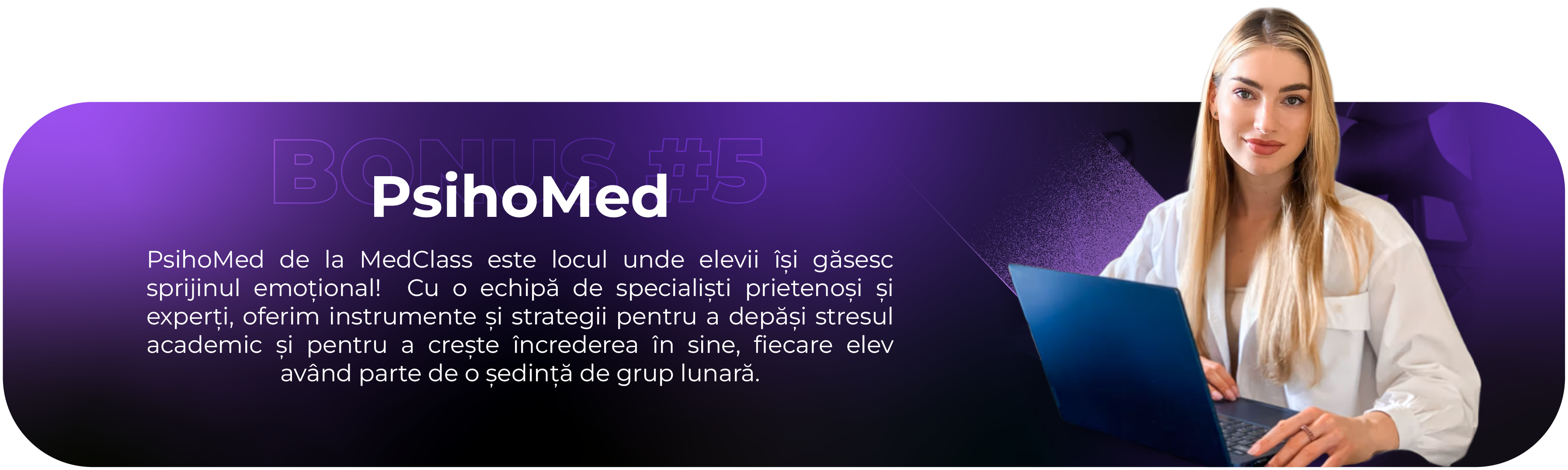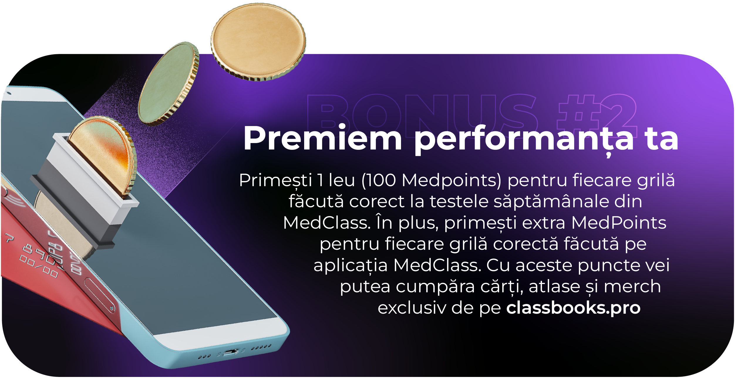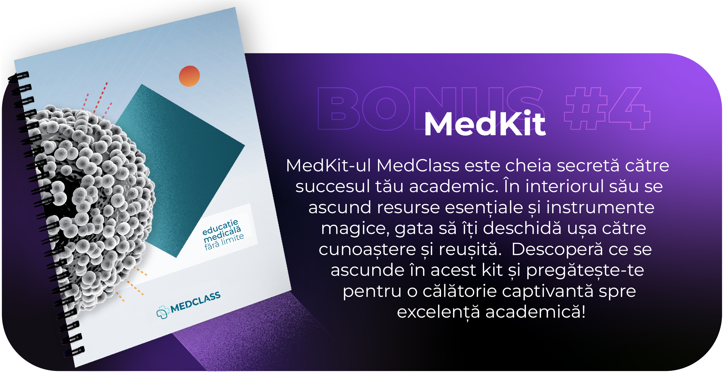 Elevii vor beneficia de acces nelimitat la întreaga gamă de resurse MedClass, inclusiv la toate flashcardurile de biologie, chimie și fizică, precum și la peste 45.000 de grile de învățare. Prin intermediul platformei noastre, vor putea utiliza inteligența artificială Dante, să se conecteze la comunitatea MedClass și să își ia note direct în aplicație. Oportunități educaționale și instrumente utile, toate la îndemâna lor.