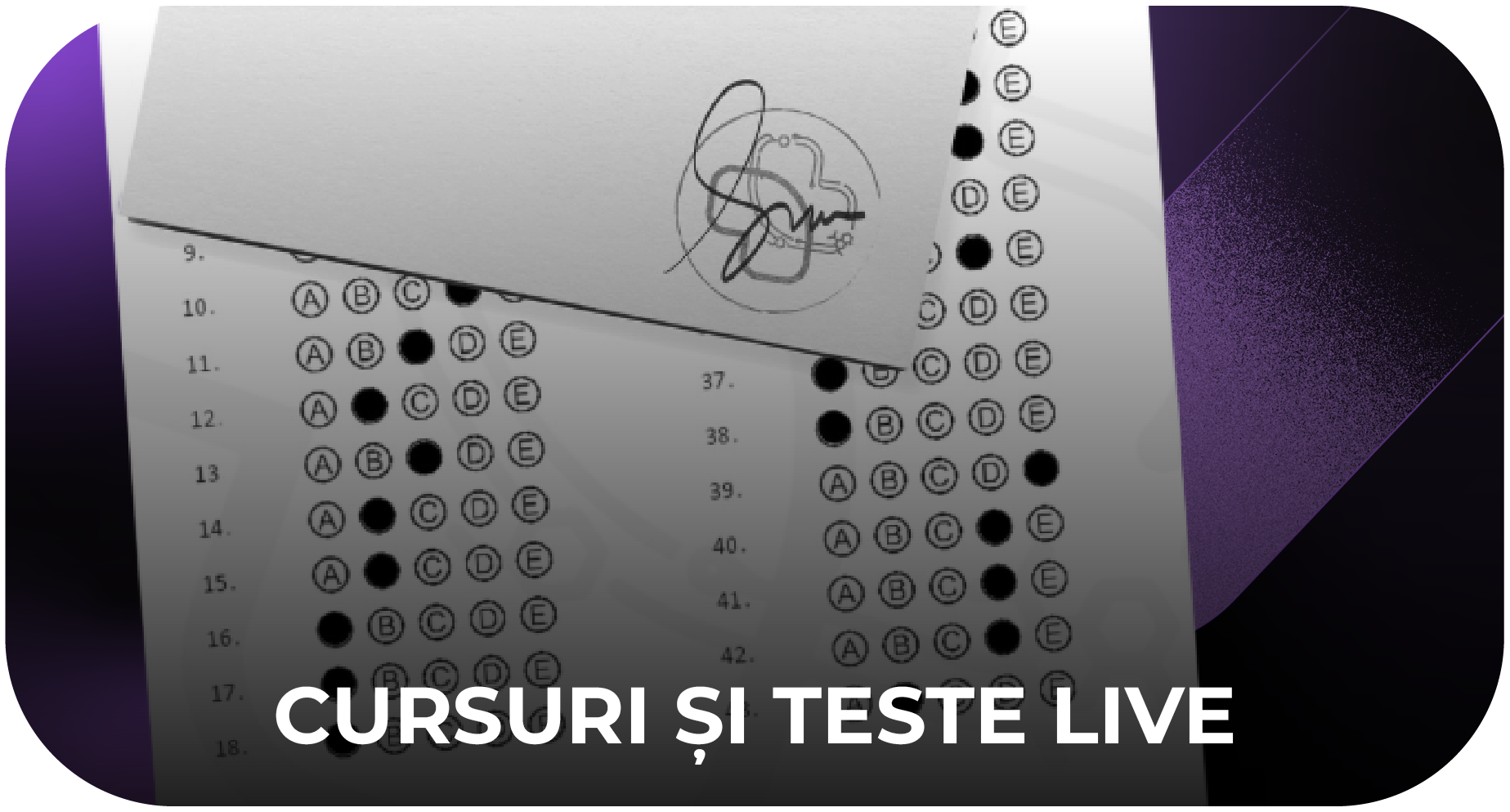 Vei participa la cursuri online live, având acces oricând la materialele cursului. Susții teste fizic pe foaie, direct de acasă la începutul fiecărui curs live, iar cu ajutorul sistemul nostru automat de corectare, care pe baza unei singure poze a borderoului îți calculează instantaneu rezultatele, afli poziția ta în grupă și numărul de grile corecte.